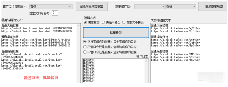1、批量转普通淘宝链接,普通天猫链接,普通猫超链接